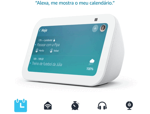 - Conexão Bluetooth – Sincronize facilmente seu celular e reproduza qualquer áudio diretamente na Echo Show 5, sem complicações.